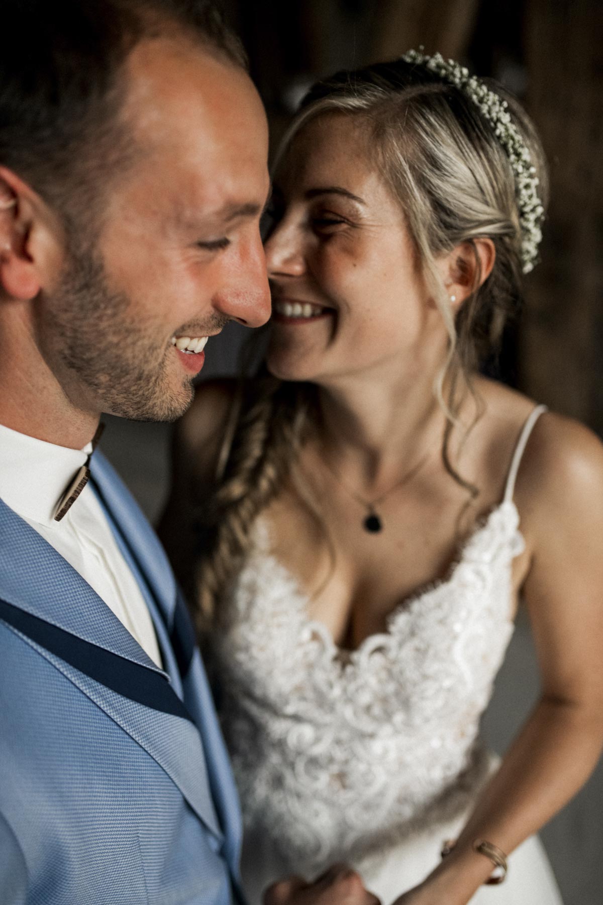 Hier gibt es verschiedene Möglichkeiten, das beste Licht haben wir bei Sonnenschein gegen Abend. Zu dieser Zeit gibt es ja meistens Abendessen, daher würde ich Abends zwar eine Session einlegen, aber nur kurz, also zum Beispiel nach der Vorspeise. Sonst bietet sich der Nachmittag noch für ein kurzes Shooting an oder wir machen die Bilder zusammen mit einem First Look vor der Trauung und dann eben Abends evtl. noch ein paar Sonnenuntergangsbilder. Wichtig finde ich, dass ihr am Nachmittag einfach nicht zu lange weg seid.